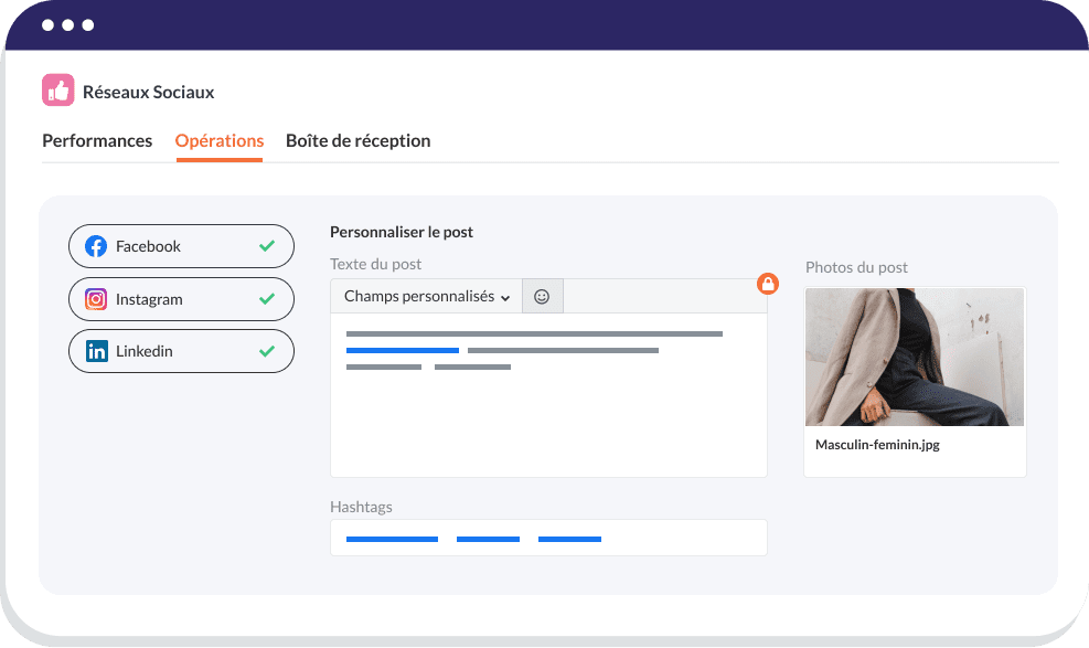 You can help your points of sale to communicate regularly on Facebook, Instagram and LinkedIn by publishing for them or sharing ready-to-use posts that they can personalise and programme in just a few clicks.